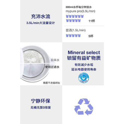 采用创新四阶段过滤科技,有效滤除细菌杂质,保障家人用水健康。采用大流量设计,带来充沛水流,秒接一杯水,饮水更便捷。
