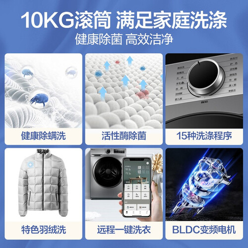 选用健康除螨洗设计,远离细菌滋扰,呵护敏感肌肤。采用智能WIFI设计,一手掌控洗涤过程,更舒心。