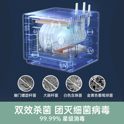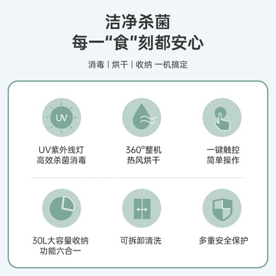 合理分区,能够轻松的容纳餐具、奶瓶、刀具等物品。内置有自动沥水孔,洗净后的餐具无需擦拭。