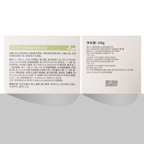 兰可欣绿茶清肌去黑头面膜