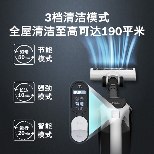 搭载BLDC无刷数码电机,动力强劲,运行更加持久稳定。拥有180°转向LED地刷,轻松清洁卫生死角,实现全屋清洁。