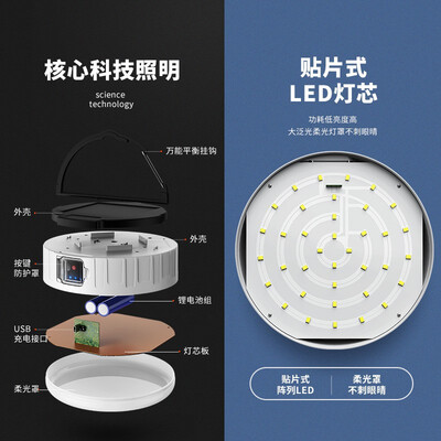 支持一键切换功能,可以让你快速调节光照模式,避免繁琐不便;提手挂耳设计,可以让你轻松悬挂放置,提升照明范围。