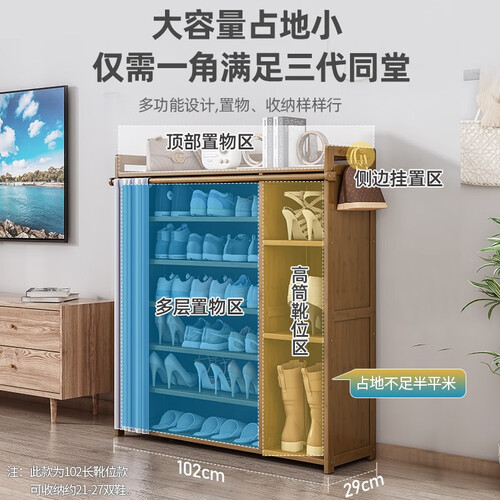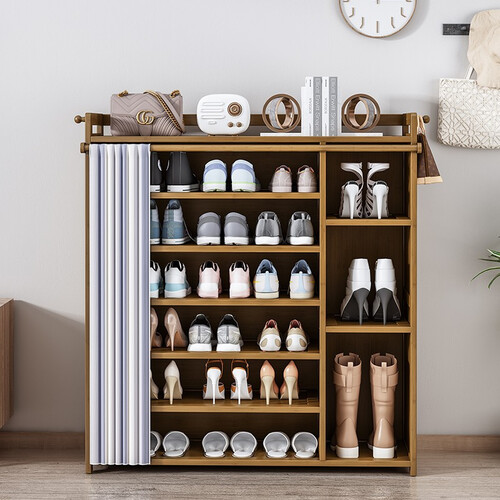 具有防尘布帘,能够减少灰尘的进入,保持鞋架内鞋子的干净,舒适贴心。含有加高护栏,能够贴心防护物品,避免损坏情况发生。