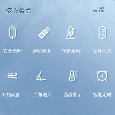 安全无叶的设计,安全省心,可以避免家人误触。12挡风量,搭配温度显示的设计,让温度一目了然。