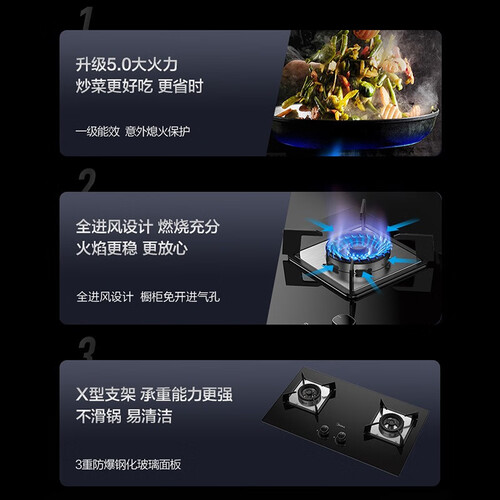 具有黑钢玻璃面板,清洁轻松又耐用,好品质大众皆爱。采用全进风设计,火焰平稳强劲,烹饪出色香味俱全的美味。