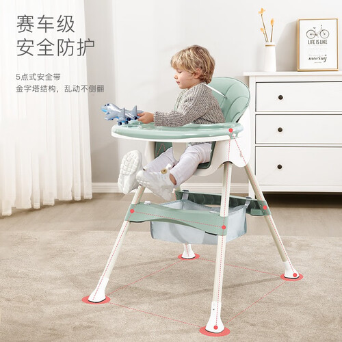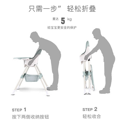 轻按双侧收纳按键即可合起餐椅,简单方便,轻松收纳。三角四点力学结构椅身,分散受力位置提高稳固性,安全性出众。