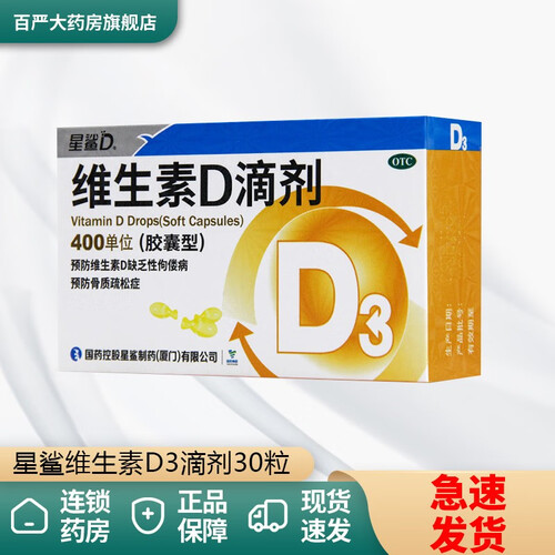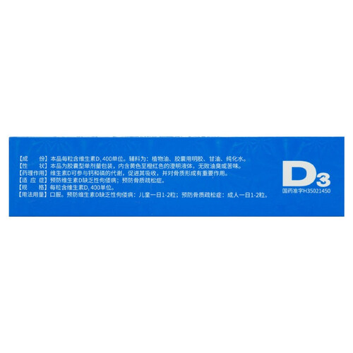 国药星鲨大品牌,品质可靠。每粒含400IU维生素D3,高含量D3,促进钙质吸收。骨胶胶囊材质,入口无杂质。