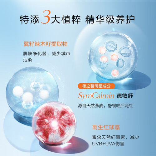 二氧化钛成分,反射蓝、紫外线,帮助高倍防晒,不伤肌肤;法国海岸松多维度防护,抵御蓝光损伤。此外,烟酰胺美白,拒绝晒黑。