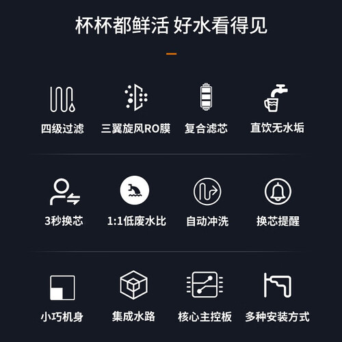 迷你小巧机身设计,仅仅A4纸大小,安装不占位,小户型安心使用。支持WIF智控,水质情况一目了然,喝水更安心。