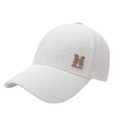 精选透气的涤纶面料打造,佩戴不会造成闷汗的情形,能够给头部更舒适的体验。斜侧镶钻M字母扣饰点缀,为整体造型加分不少。