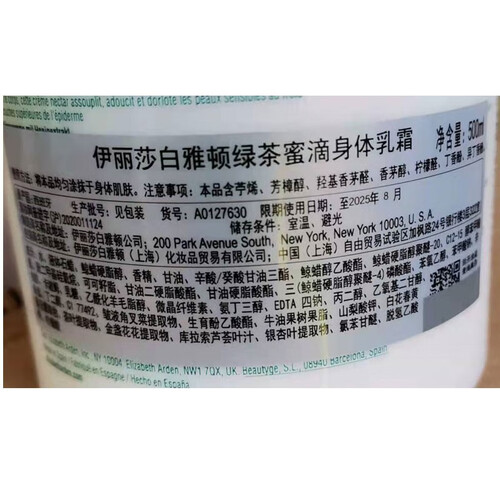 伊丽莎白雅顿 绿茶蜜滴润体霜