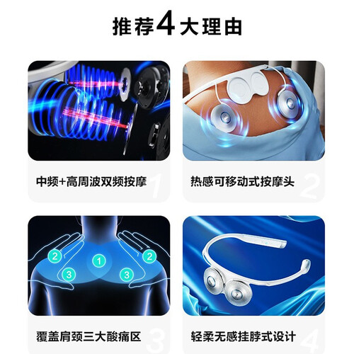 中频+高周波双驱动,中频能量深层按摩,舒缓紧绷肌肉,高周波持续修护,缓解酸痛唤醒活力。重量约87g,可轻松佩戴一整天。