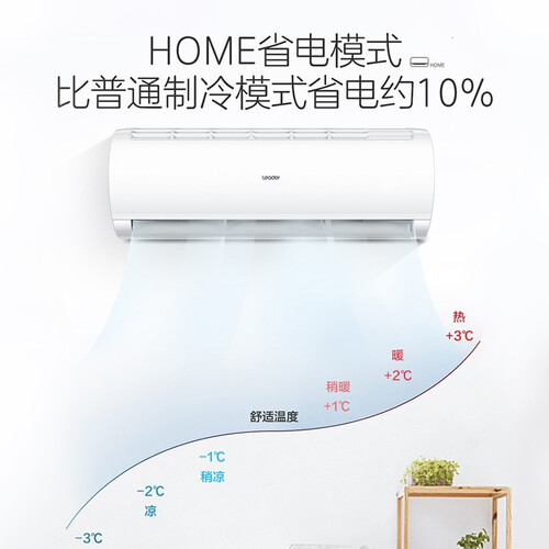 恰到好处的简约,一见倾心,20秒速冷,拿支雪糕的时间就凉爽。变频省电,全体开启无压力。HOME一键,自动进入舒适温度。