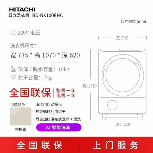 日立 原装洗烘一体全自动洗衣机
