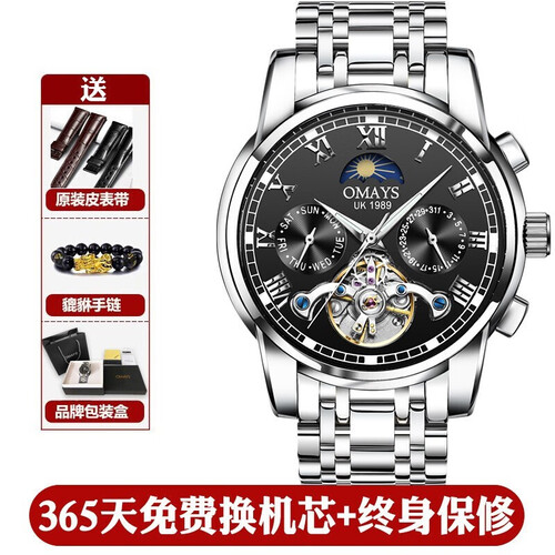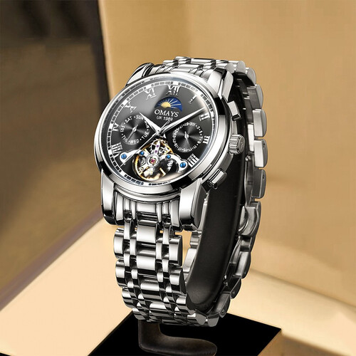 双面镂空设计,能清晰看见内部机芯运转。316精钢实心表壳,经过多道工序无死角抛光打磨,经久耐用。