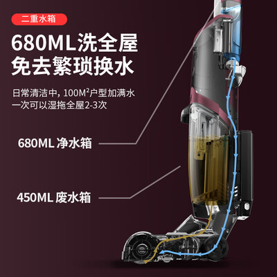 采用活水清洁系统,洗地时按需喷洒滚刷,实现同步清洁,避免污染地板。同时创新吸力系统,清洁更优质。