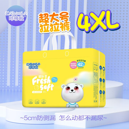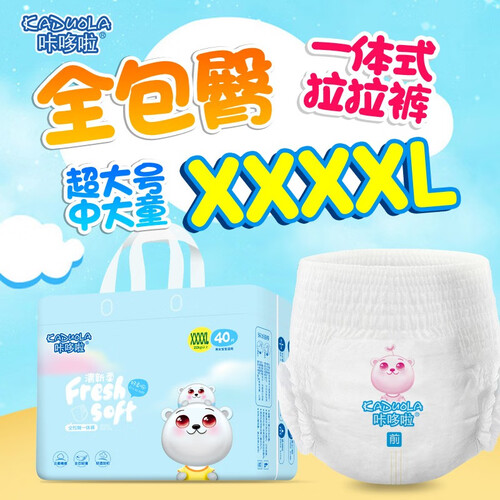 加大尺寸设计,适合体型较胖的宝宝,穿着舒适不紧绷。拥有大吸量,可轻松锁住整晚尿液,一片就可舒睡到天亮。