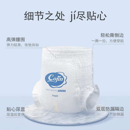 护围由棉柔材质制作,触感细腻不粗糙,不易磨损肌肤。底膜拥有透气微孔,加大空气流通性,臀部清爽不潮闷。