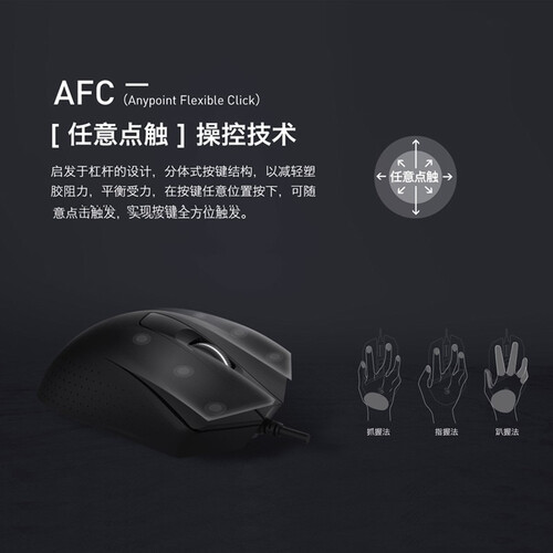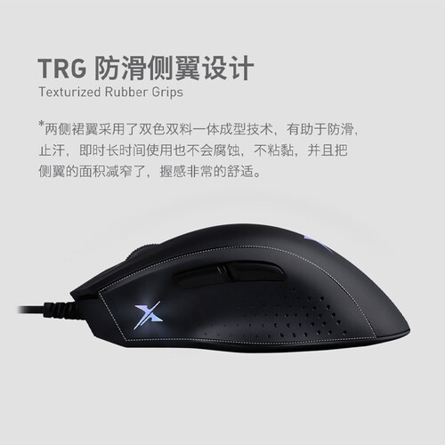 鼠标两侧采用双色一体成型技术,有防滑、止汗等特点,长时间使用不会腐蚀、粘黏,而且抓握手感非常舒适。
