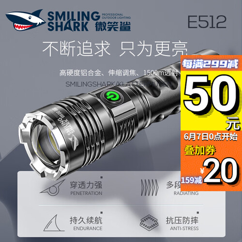 微笑鲨伸缩调焦手电筒