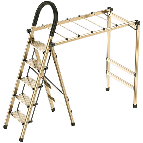 采用一架多用的设计,既可用来登高,又能晾晒衣物,更加实用便捷。结合加固的横梁,承重力更强,登高更有保障。