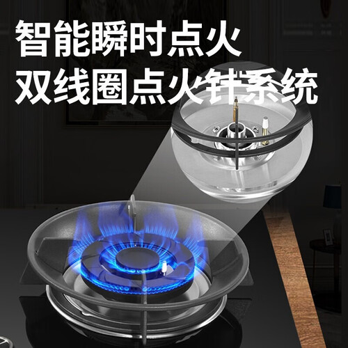 黑晶钢化玻璃面板,清洁更方便,一擦即净,弧度设计避免磕碰的事情发生。智能瞬时点火,无需长久等待。