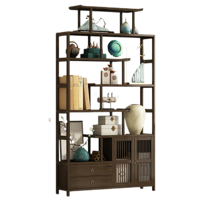 整体是新中式的禅意风格,注重文化精髓,讲究雅致意境。书架由高山楠竹材质打造,加厚升级不怕高承重。