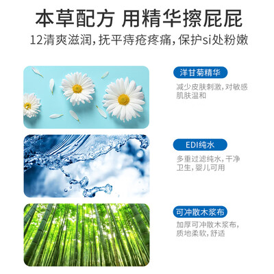 提取洋甘菊净化,成分温和减少对肌肤刺激,可放心擦拭屁屁。便携小包装,外出携带方便,放在包包也不占空间。