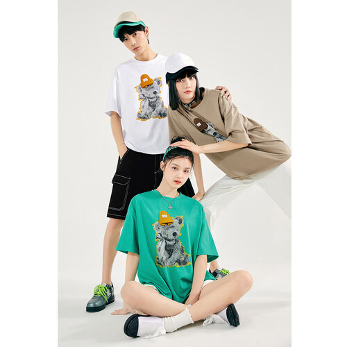 选用优质的新疆棉织造而成,具有亲肤透气的特性,并且很耐穿。采用经典圆领设计,搭配胸前的萌小熊,时尚感满满,出街更显精神。