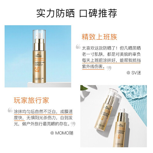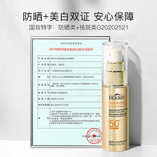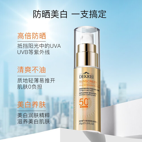 有着高倍防晒能力,实力抵抗各种光线对肌肤的伤害,避免光老化。含美白润肤精粹,滋润美白,让肌肤更加白皙透亮。