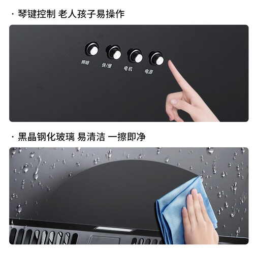 宽屏近吸,宽幅进风,快慢随意切换,牢牢锁住烟气,双滚珠塑封电机,防水防尘,不惧高温,内置LED照明,细节出众,无限可能。
