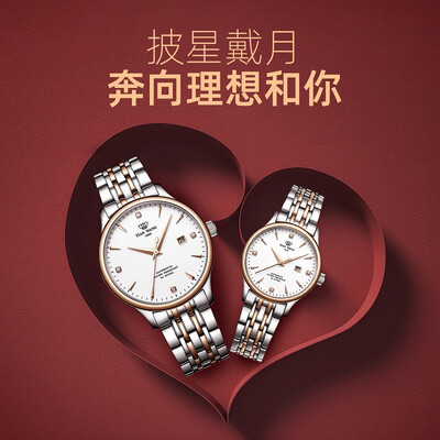 情侣对表,爱情的见证者。表壳采用时尚玫瑰金色,简约大气当中透露着优雅。人工合成蓝宝石玻璃表镜,清澈透亮又兼顾防水耐磨。