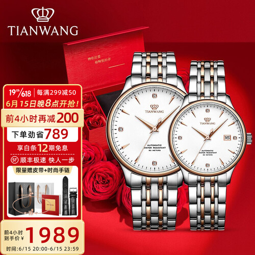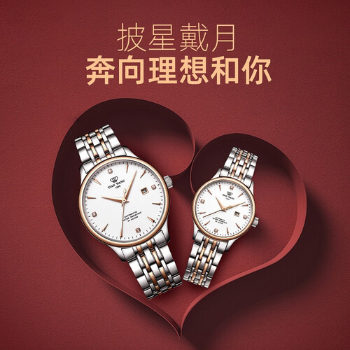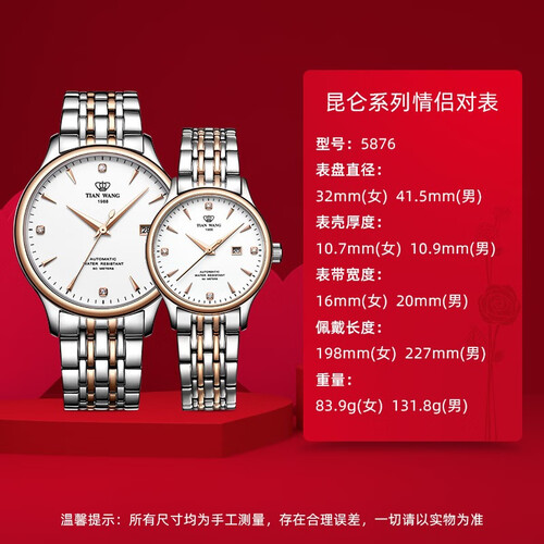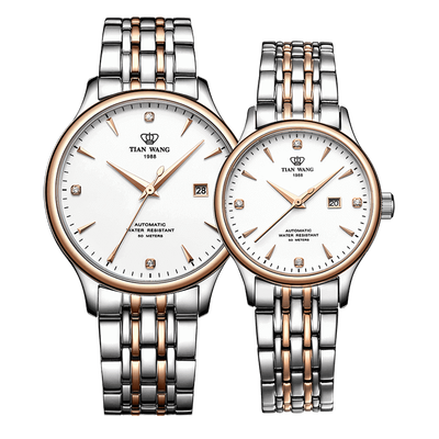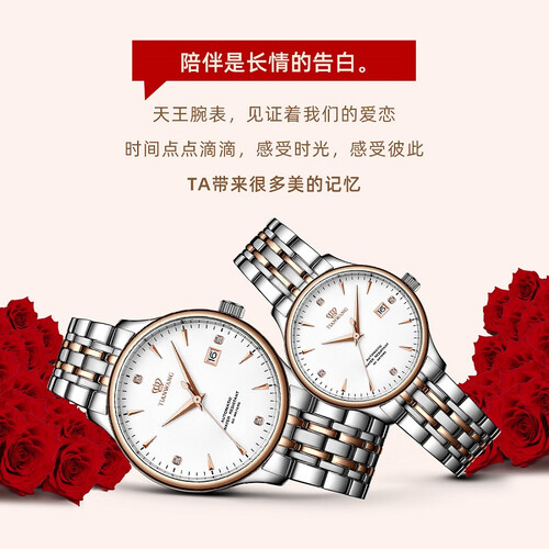天王表 时尚玫瑰金 情侣对表