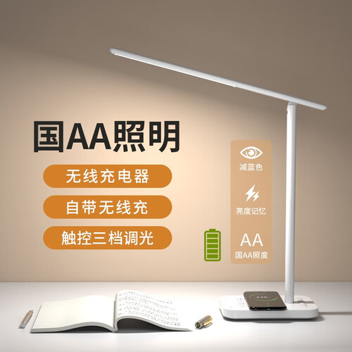拥有护眼的双光源,可以根据使用场景选择合适的亮度和色温,更好的呵护眼睛。配有无线充电器,放下即充,使用更便捷。