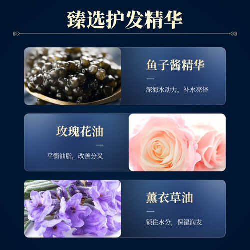 甄选鱼子酱、玫瑰花油和薰衣草油等护发精华,有效平衡头皮油脂分泌,令秀发清爽水润。搭载透明质酸钠成分,助力修复受损毛鳞片。