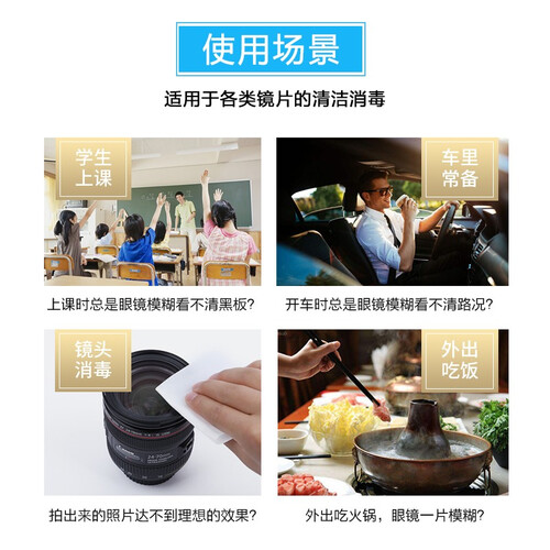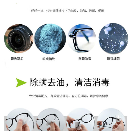 添加了专用配方溶液,能够快速去除镜片细菌和污垢,清洁不费力。湿巾柔韧,擦拭时不易掉屑,避免对镜片造成二次污染。