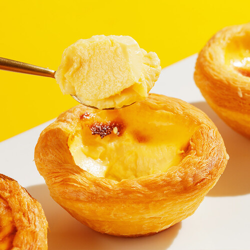 严谨配比的金黄蛋挞液,只要倒入到蛋挞皮中,就可以开始快捷烘焙了,蛋挞内芯口感柔嫩丝滑,奶香浓郁,都是蛋挞液的功劳!