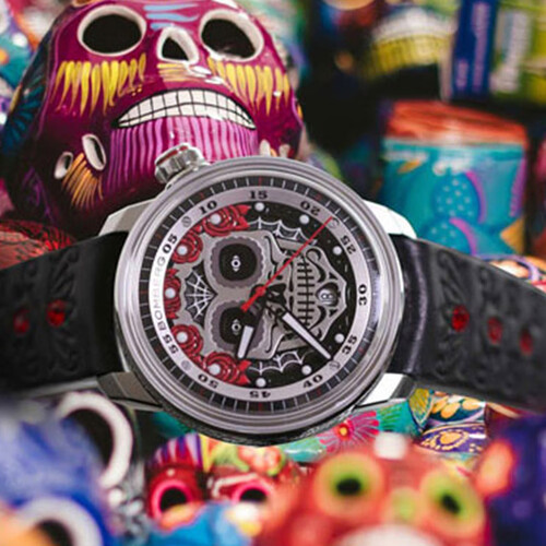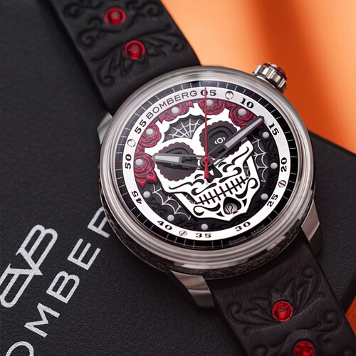 选用全自动机械机芯,赋予了它强劲的性能以及较小的误差,走时准确。多层次的骷颅表盘设计,新颖别致,个性十足。