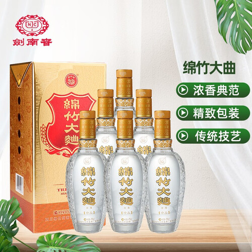 采用正宗绵竹大曲,口感醇厚绵柔,香气浓郁。瓶口密封性比较好,避免与空气接触,储藏时保证白酒的品质。