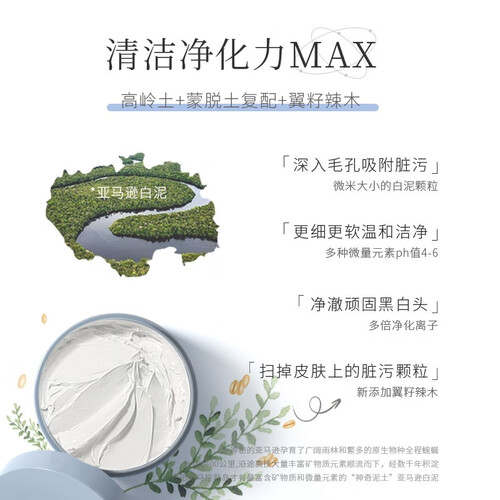 含PCA锌成分,能均衡肌肤内外水油平衡,抑制多余油脂分泌。从巴西进口的高岭土原料,强力吸附黑头和粉刺。
