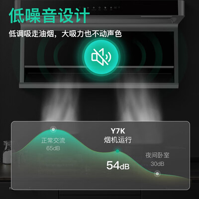 智能挥手设计,左右轻轻一挥,快速开关,风量随心调,避免双手油污。采用顶侧双吸模式,油烟不分散,排烟更彻底。