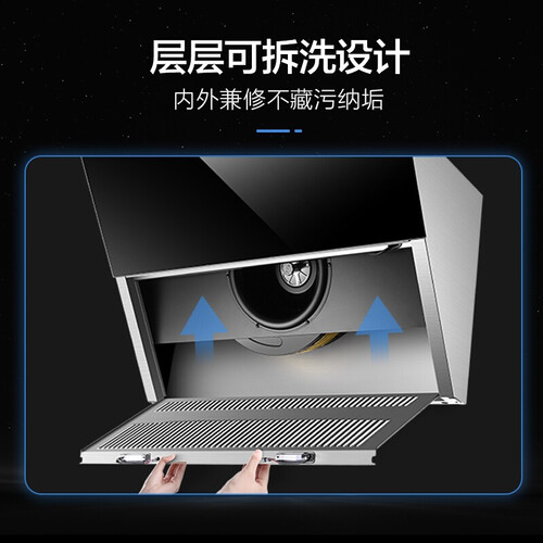 使用升降面板,吸烟口距离油烟近,能够有效的防止炒菜碰头,呵护家人安全,内置智能感应系统,轻轻挥手即可开启面板,远离油污。