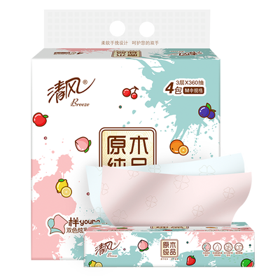 双色幻彩纸巾,外观精美时尚潮流,深受年轻人的喜爱。内含保湿乳霜,纸质柔软敏感人群也能放心使用。