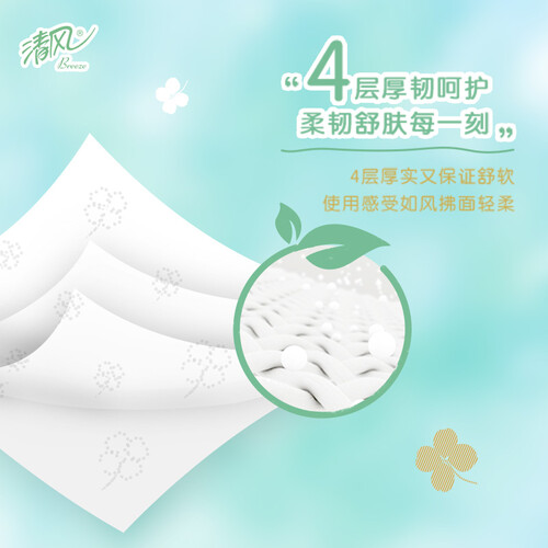 添加天然萃取的桉树精油,赋予纸张自然清新的桉树气息。精美四叶草压花,纸张不易分层,结合厚实细腻的质地,轻柔洁净家人肌肤。