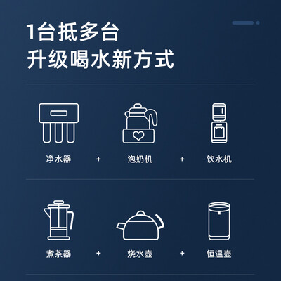 在净水存储罐中增加了uv模块,有效抑制细菌滋生。机身体积设计的更为小巧,可随心放置在台面,移动也无压力。
