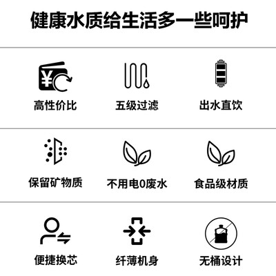 采用大颗粒活性炭吸附设计,优质的活性炭可以有效地吸附氯,异色细菌和小分子有机物,守护水质健康,小巧机身节省厨下空间。