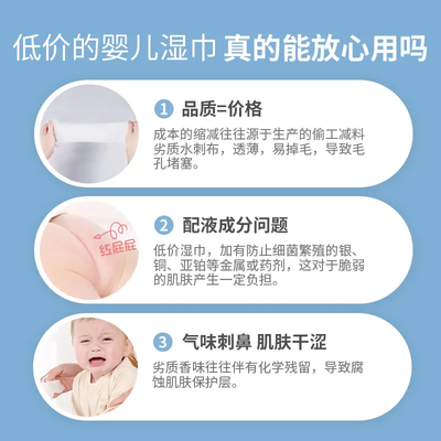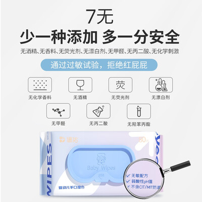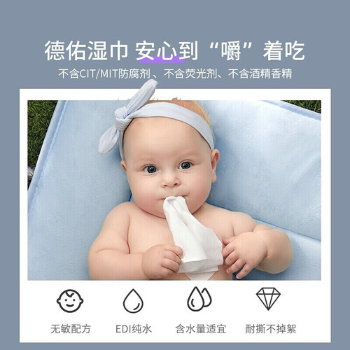 这款湿巾采用无敏设计,肌肤敏感的婴儿也能放心使用,就算不小心舔咬也不用担心。厚实的材质,耐用不易变形,满足多种场景使用需求。