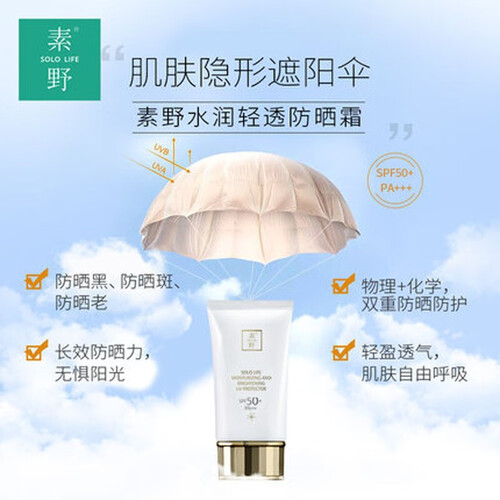 物理化学二合一防晒,持久防护防晒,户外烈日下守护肌肤健康。添加五种植物提取物,温和质地亲肤性强,敏肌可使用。