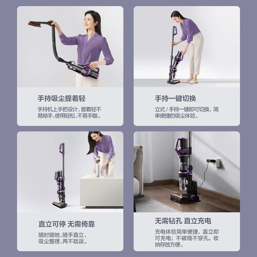 立式设计,持握舒适不累手,全屋清扫不费力,老人女士也能用。滚刷采用复合纤维设计,解决毛发缠绕烧机烦恼。
