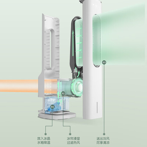 制冷小空调,强劲冷风,储冷时间更长久,可持续提供凉爽环境,大角度摆风设计,可上下调节角度,避免直吹带来的不适。